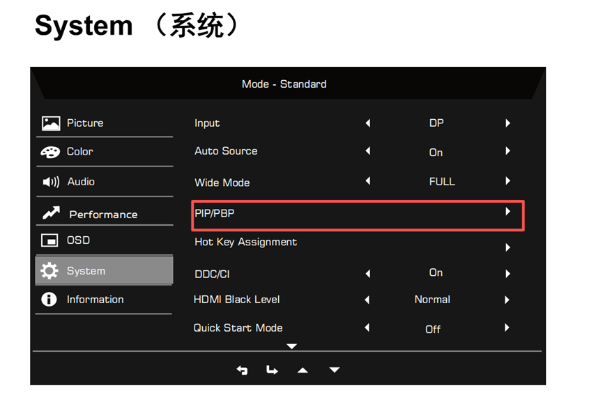 A.如图所示进入OSD菜单——系统将PIP/PBP选项开启即可