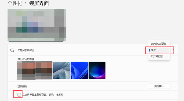 Win11新机锁屏后会发现锁屏界面下方会有天气,新闻等提示窗口,下面演示如何关闭此信息展示,从而让锁屏界面变得更加整洁美观 1.桌面空白处右键个性化 2.选择锁屏界面 3.个性化锁屏界面下改为图片,取消勾选在锁屏界面上获取花絮提示等技巧 4.锁屏界面状态选择无 5.修改完成即可获得一个干净美观的锁屏界面