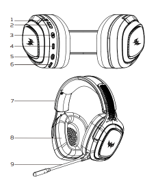 Look at the Predator Galea 550 manual HERE as its only in Ukrainian so you will need to translate its content to English like I did below for the Device Overview, if you are not Ukrainian. Good luck.