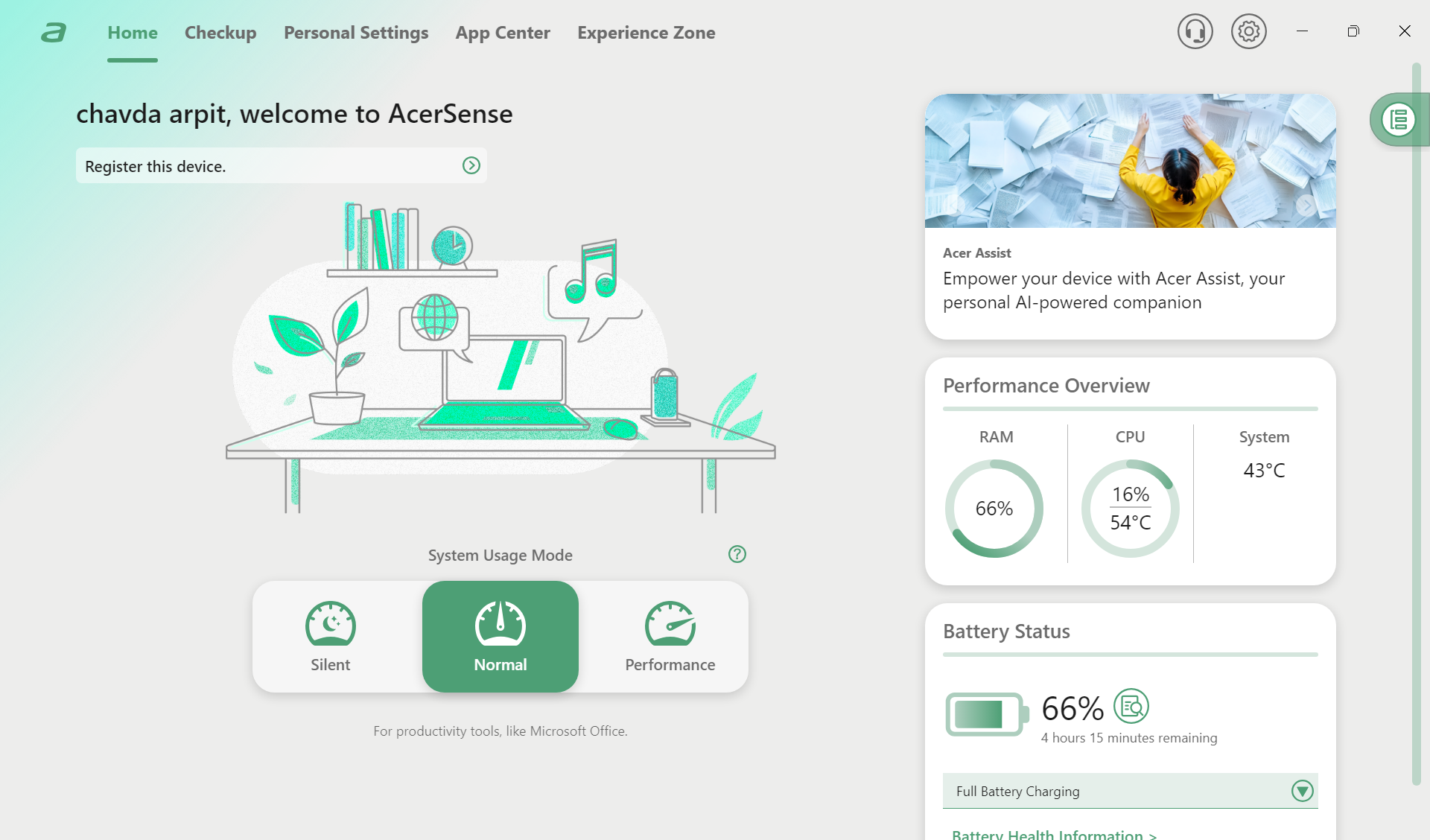 Re: Sf16-51T - Acer Sense not allowing changing of System Usage Mode