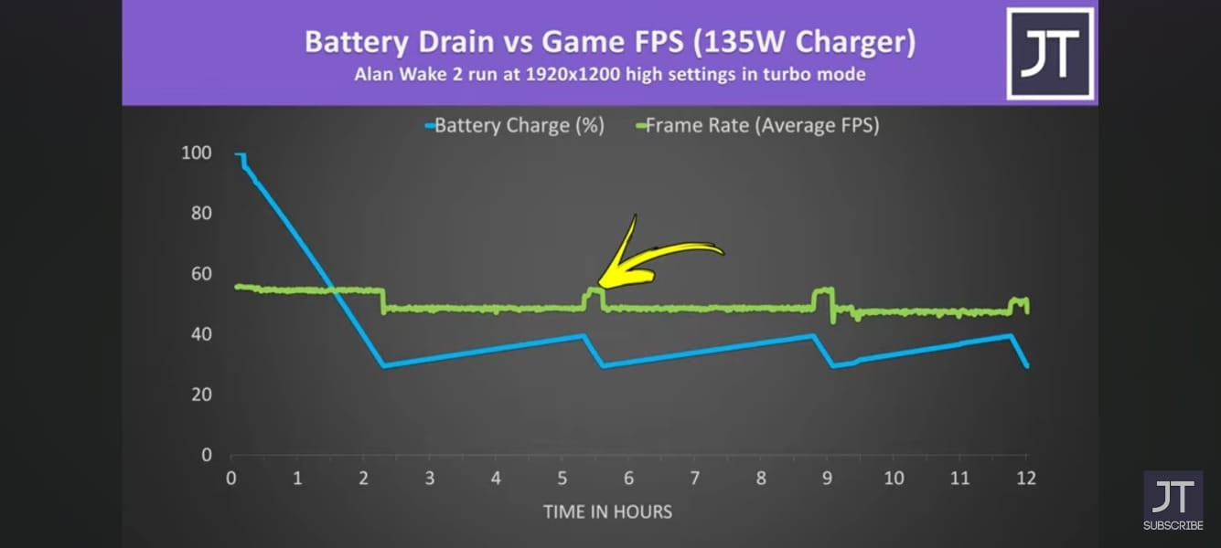 The device comes with a 135W adapter, but when playing games (especially on high performance mode), the battery percentage drops continuously.