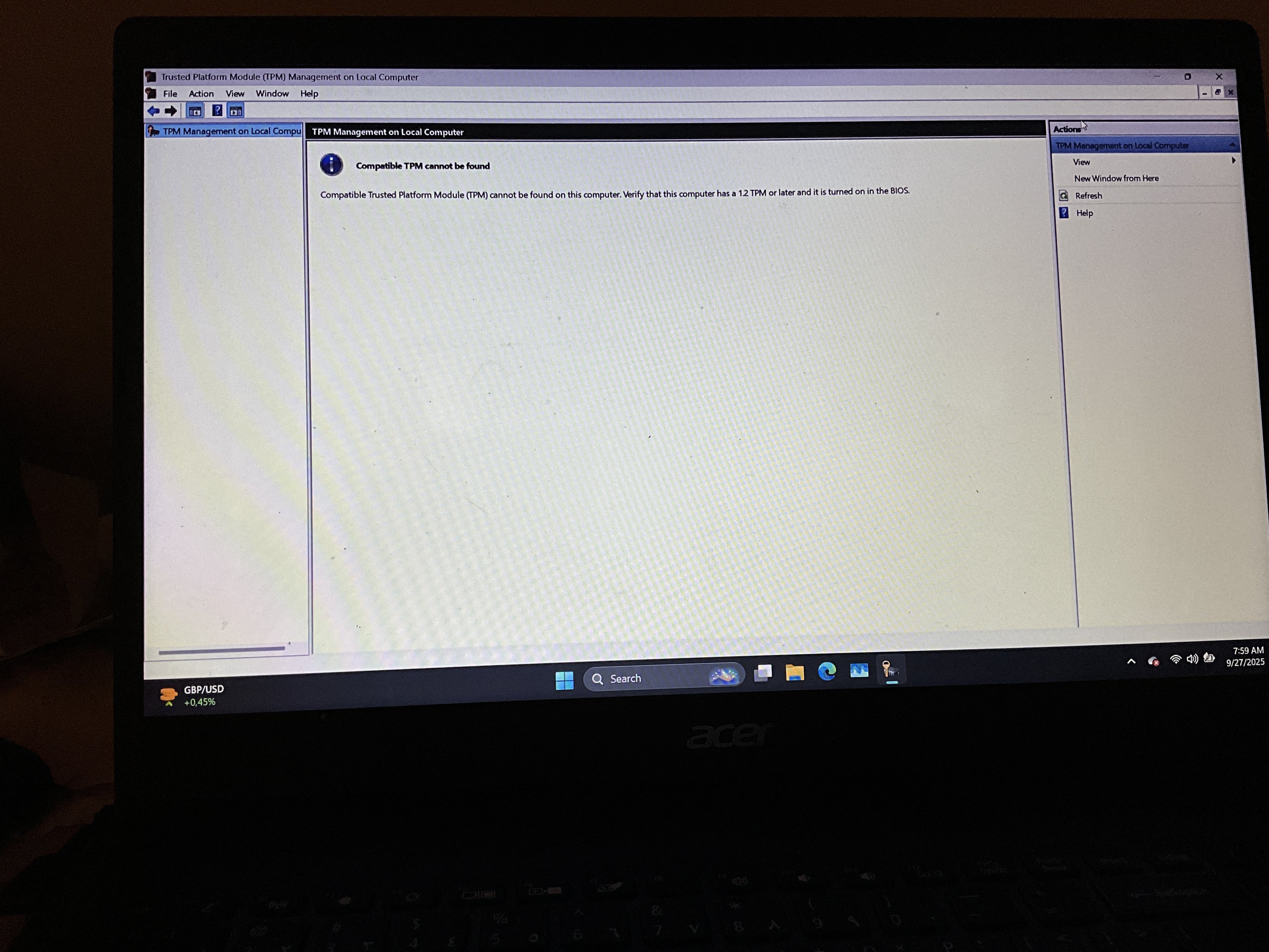 I read a post about it and tried all the steps and detector says I have tpm I checked on boot and it’s not there I watched my yt videos nobody has my version or bios , reset my laptop as well