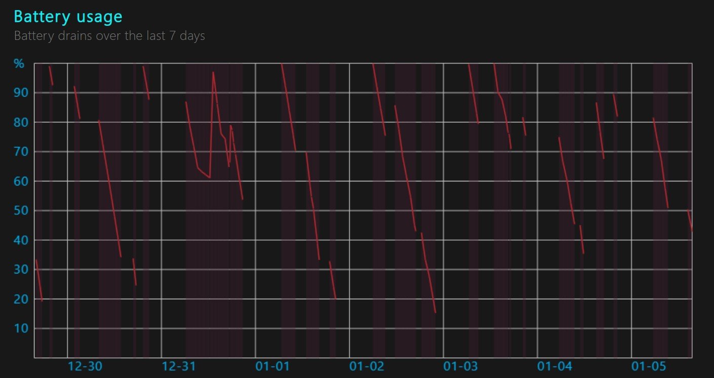 O relatório de bateria que você anexou confirma o diagnóstico: não há perfis de drenagem registrados, o que indica que a bateria não está funcionando corretamente. Em condições normais, o relatório deveria mostrar ciclos de carga e descarga ao longo do tempo — esses gráficos são fundamentais para avaliar a saúde da bateria. A ausência deles reforça que o sistema não consegue registrar atividade da bateria, sugerindo falha física ou defeito de fabricação.