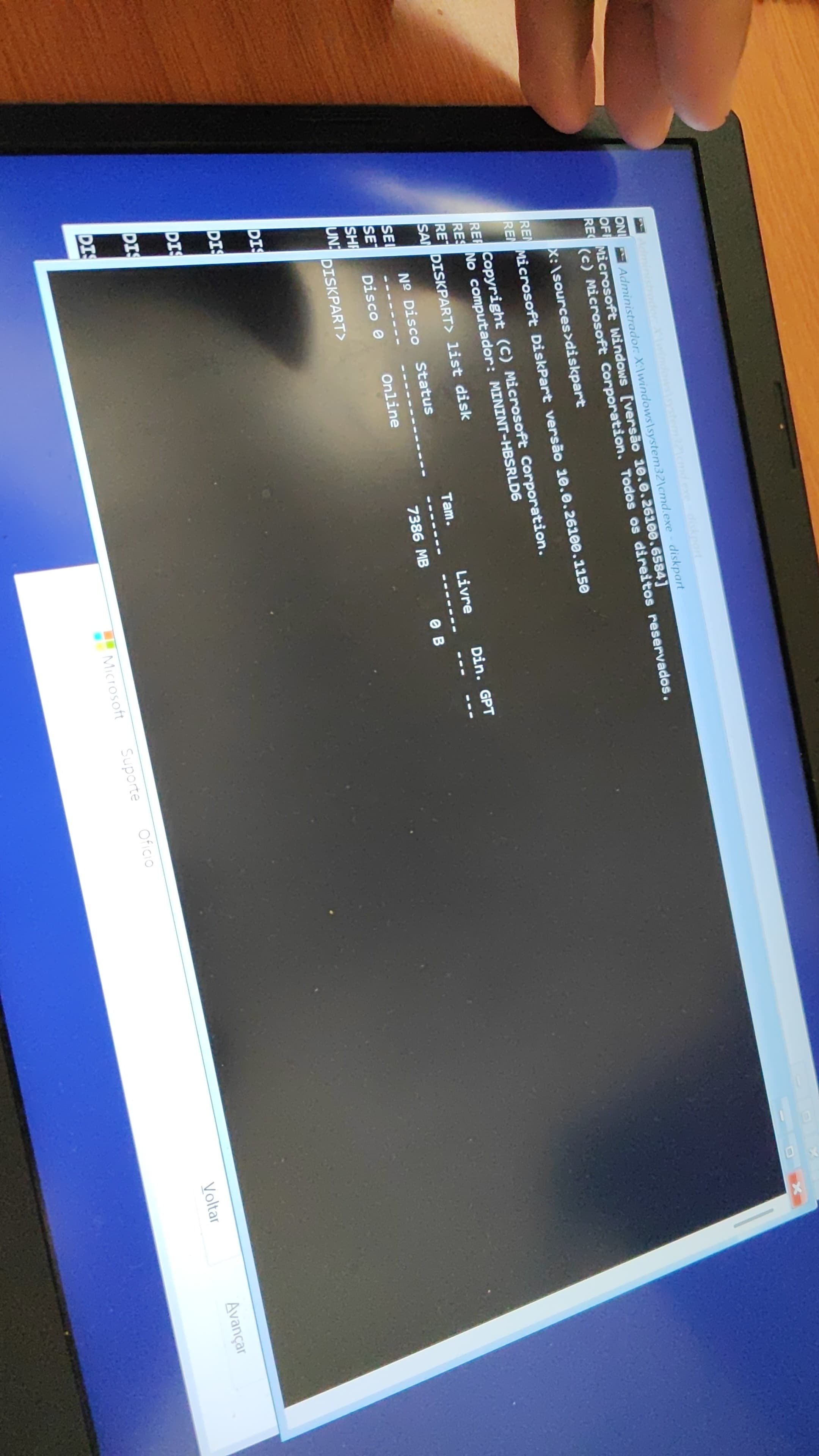 - Montei o pendrive bootável (com Windows) corretamente — ele inicia normal e entra na tela de instalação.