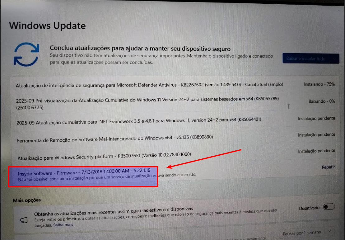 Formatei o notebook, fiz as atualizações do windows update, quando para minha surpresa