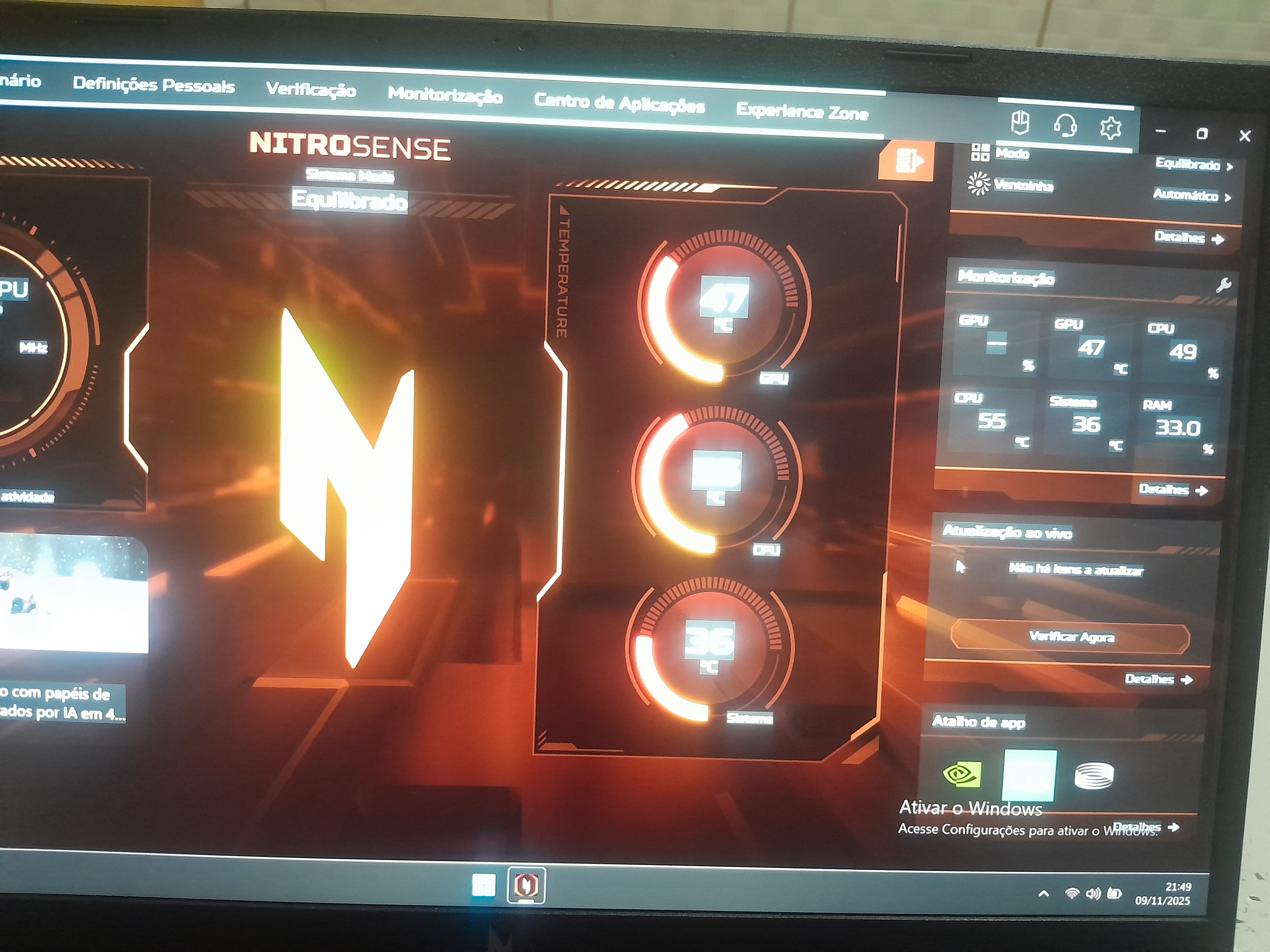 Comprei um acer nitro novo não faz nem uma semana. Fiz a instalação do Windows 11 juntos dos drivers oficiais da acer e nvidia e mostrava um fps bom porém sentia q ainda não estava utilizando 100% (minecraft vibrant visuals em 60 a 70fps)